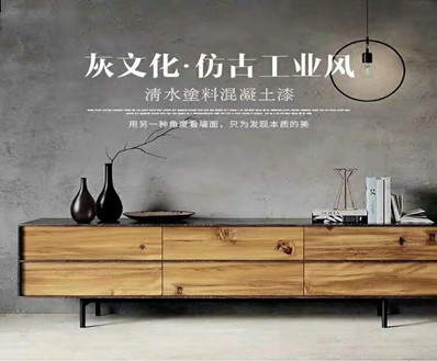 墻面水泥漆以極簡灰色效果映入眼簾,打造個性化,高品質的空間,逼真的藝術仿水泥效果,適用于不同基材,內外墻均可,表面即平整光滑也可呈現其清水不一的自然反應色,水泥漆是混凝土的最高級表達形式,它顯示的是一種最本質的美感,體現的是”素面朝天”的品味。